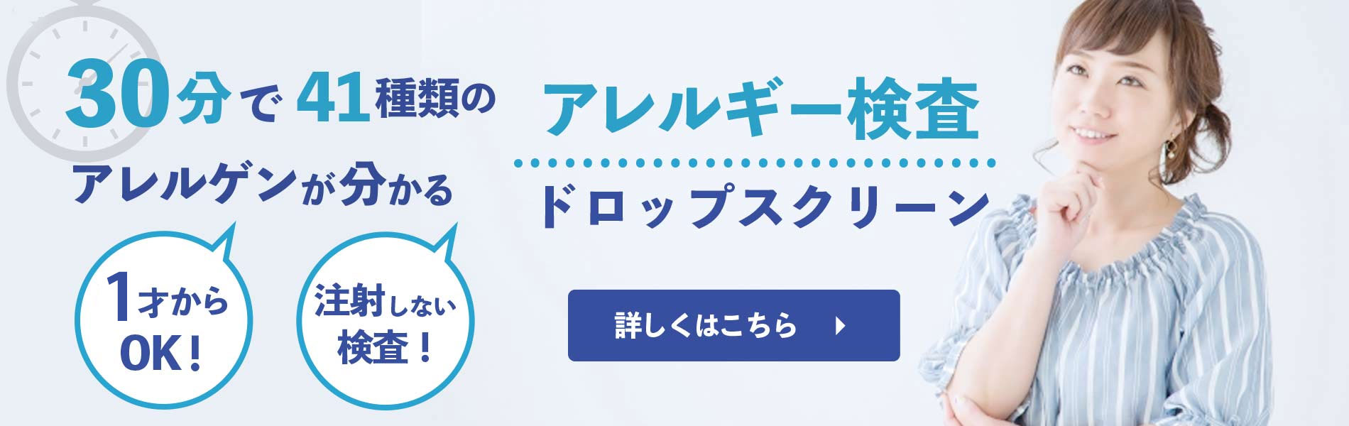 1才から可能で、41種類のアレルギーがわかるドロップスクリーン検査や、スギ・ダニアレルギーの方への舌下免疫療法、花粉症の方へのレーザー治療などアレルギーでお悩みの方の診察を行っています。