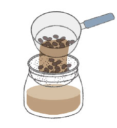 ❸ 煮汁を茶こしなどでこす。残った黒豆は、料理などに使う |