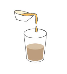 ❹ 2〜3回に分け、1日で飲みきる。ハチミツを少量加えてもよい |