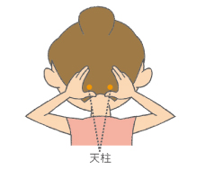 ❶ 後ろ髪の生え際辺り、2本の太いすじの外側のくぼみにある「天柱」のツボを、親指でギューッと力を込めて、5抄ほど押す。これを4〜5回くり返す。く |