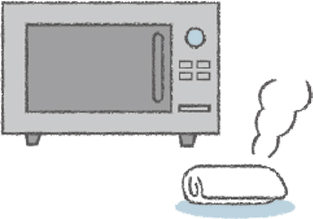 - 水で濡らしたタオルを、電子レンジで1分ほど温める