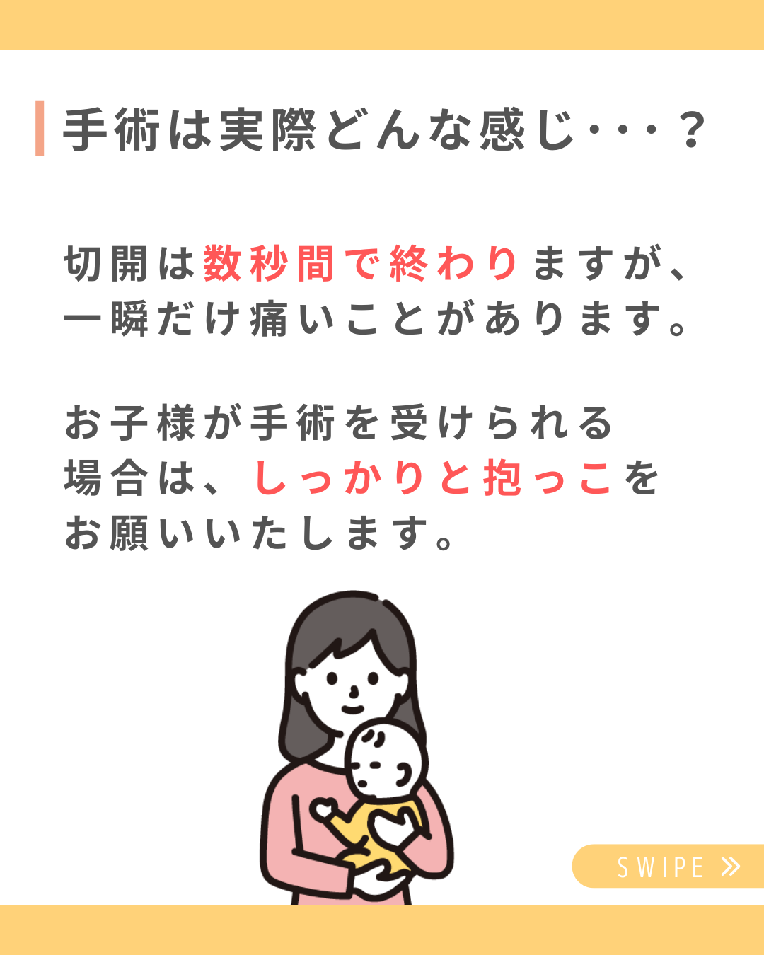 お子さまが手術を受けられる場合は、しっかりと抱っこをお願いいたします。